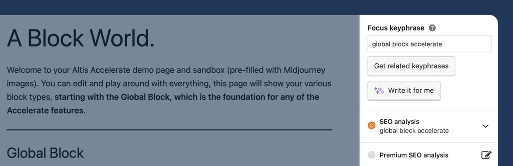 Through WordPress plugins, these insights can be integrated into your content creation process, boosting both readability and SEO rankings. The Altis Accelerate plugin even offers AI-generation options for SEO fields.